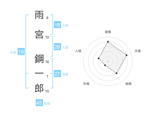 雨宮 鋼一郎さんを姓名の画数から五運を鑑定