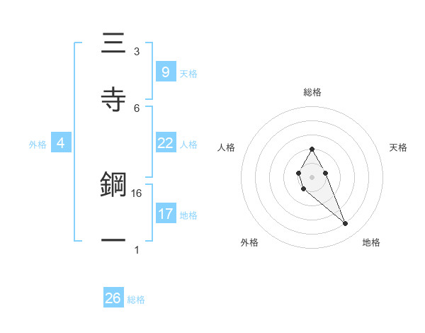 三寺 鋼一さんを姓名の画数から五運を鑑定