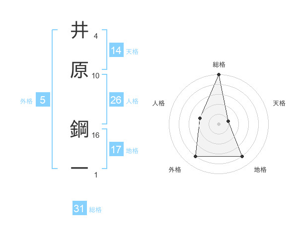 井原 鋼一さんを姓名の画数から五運を鑑定