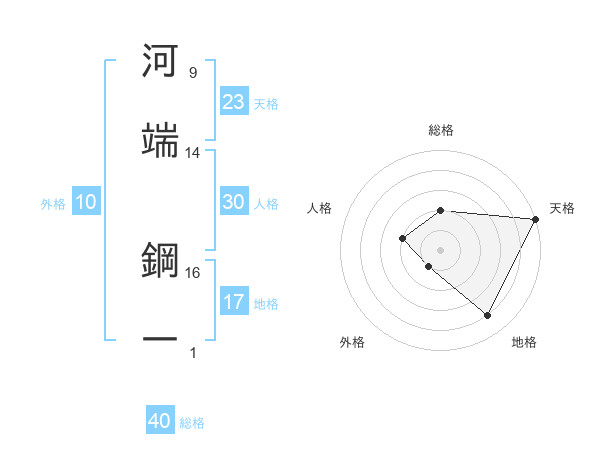 河端 鋼一さんを姓名の画数から五運を鑑定
