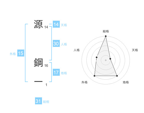 源 鋼一さんの総格は31画の5点!