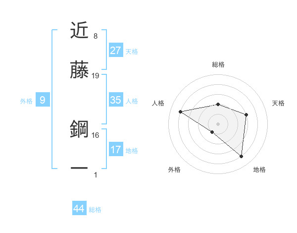 近藤 鋼一さんの総格は44画の2点!