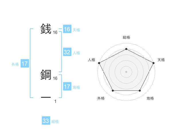 銭 鋼一さんを姓名の画数から五運を鑑定