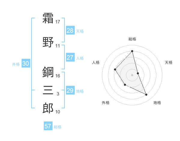 霜野 鋼三郎さんの名前の鑑定結果は!