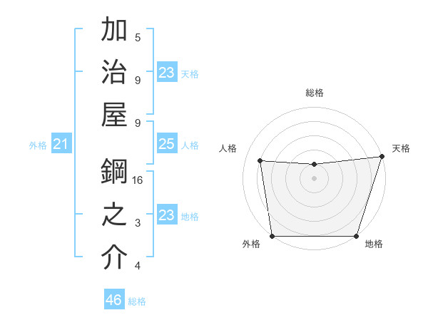 加治屋 鋼之介さんを姓名の画数から五運を鑑定