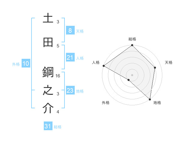 土田 鋼之介さんを姓名の画数から五運を鑑定