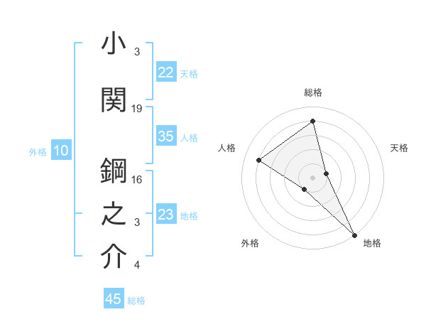 小関 鋼之介さんの総格は45画の4点!