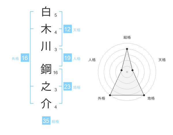 白木川 鋼之介さんを姓名の画数から五運を鑑定