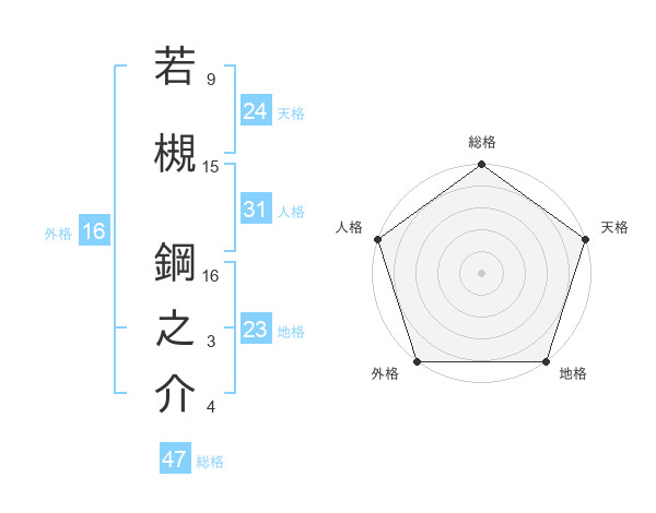 若槻 鋼之介さんを姓名の画数から五運を鑑定