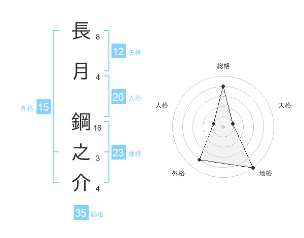 長月 鋼之介さんを姓名の画数から五運を鑑定