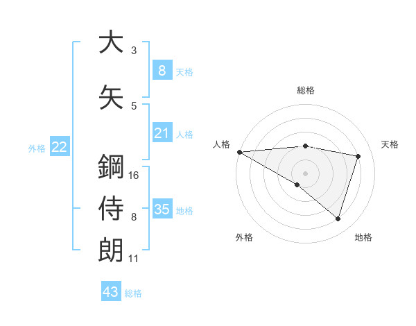 大矢 鋼侍朗さんを姓名の画数から五運を鑑定