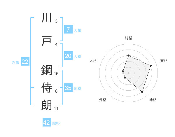 川戸 鋼侍朗さんを姓名の画数から五運を鑑定