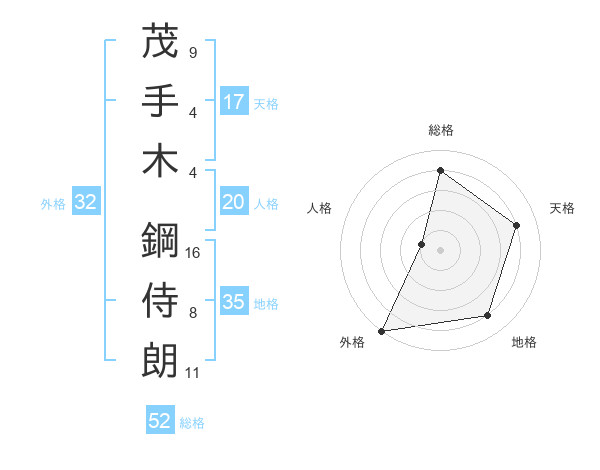 茂手木 鋼侍朗さんの総格は52画の4点!