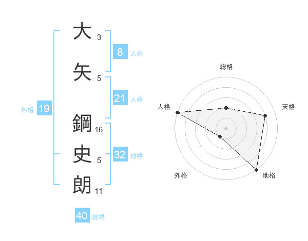 大矢 鋼史朗さんを姓名の画数から五運を鑑定