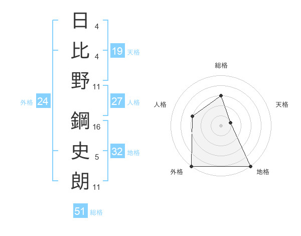 日比野 鋼史朗さんの総格は51画の3点!