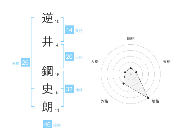逆井 鋼史朗さんを姓名の画数から五運を鑑定