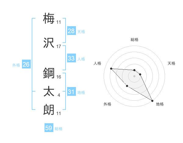 梅沢 鋼太朗さんを姓名の画数から五運を鑑定