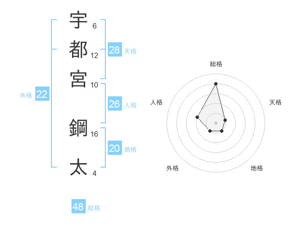 宇都宮 鋼太さんの総格は48画の4点!