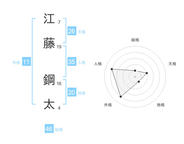 江藤 鋼太さんの総格は46画の1点!