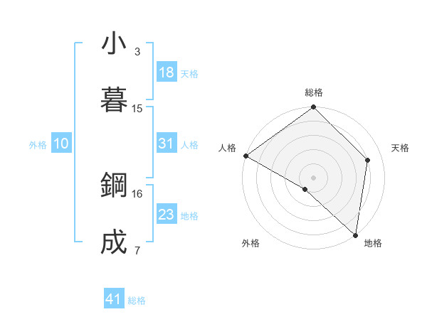 小暮 鋼成さんを姓名の画数から五運を鑑定