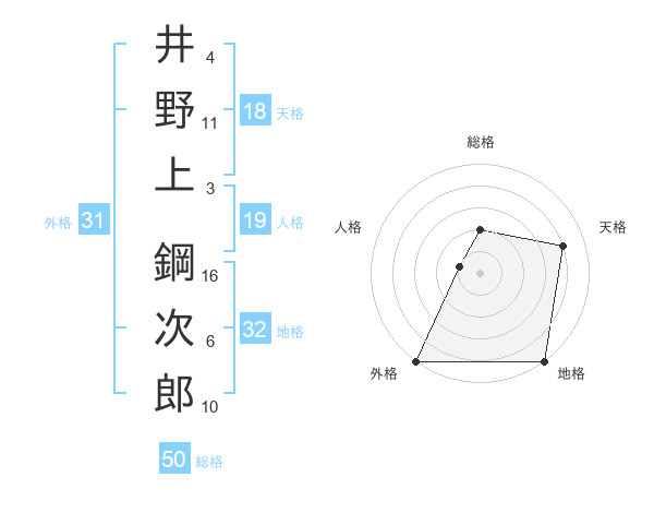 井野上 鋼次郎さんを姓名の画数から五運を鑑定
