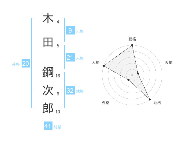 木田 鋼次郎さんを姓名の画数から五運を鑑定