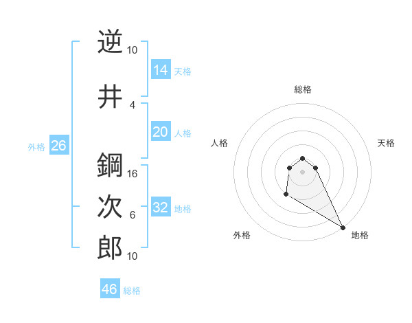 逆井 鋼次郎さんを姓名の画数から五運を鑑定