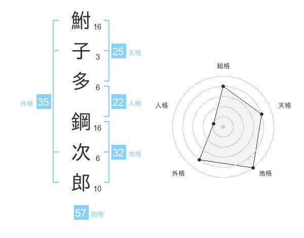 鮒子多 鋼次郎さんの総格は57画の4点!