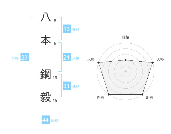八本 鋼毅さんを姓名の画数から五運を鑑定