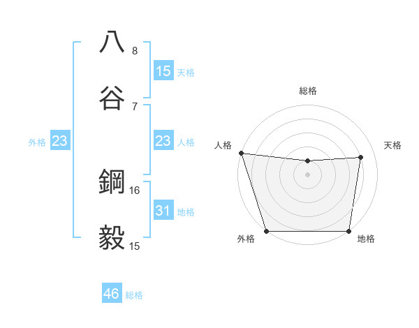 八谷 鋼毅さんの外格は23画の5点!