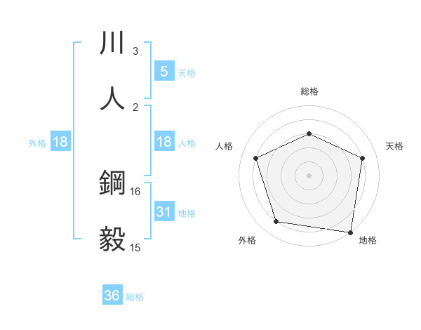 川人 鋼毅さんの天格は5画の4点!