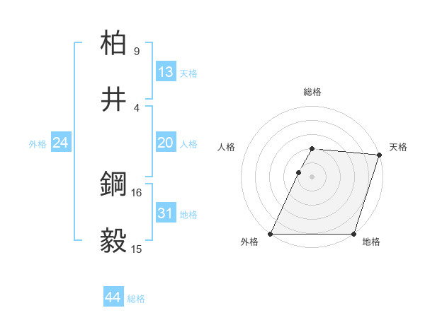 柏井 鋼毅さんの地格は31画の5点!