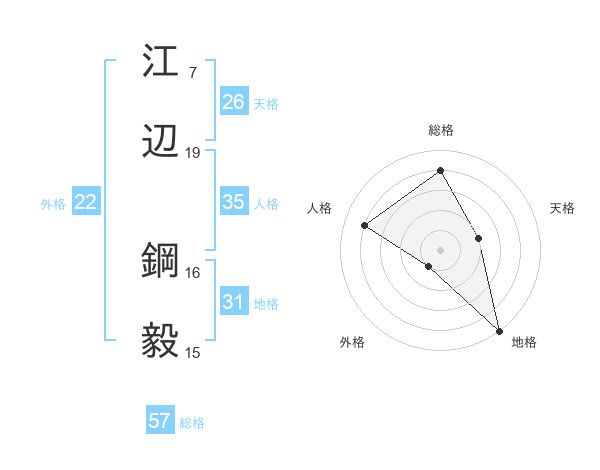 江辺 鋼毅さんの総格は57画の4点!