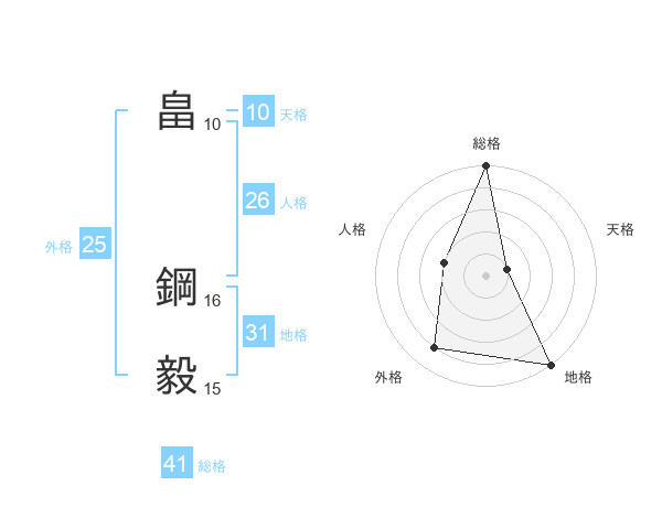 畠 鋼毅さんの総格は41画の5点!