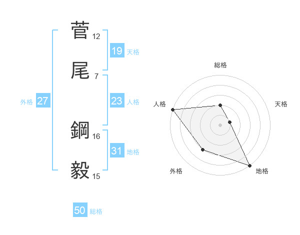 菅尾 鋼毅さんを姓名の画数から五運を鑑定