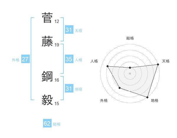 菅藤 鋼毅さんの地格は31画の5点!