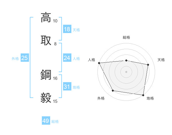 高取 鋼毅さんを姓名の画数から五運を鑑定
