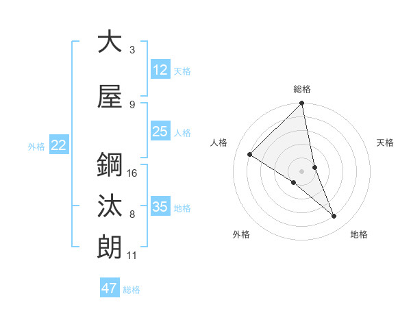 大屋 鋼汰朗さんを姓名の画数から五運を鑑定