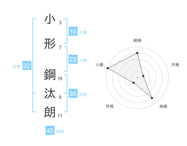 小形 鋼汰朗さんの総格は45画の4点!