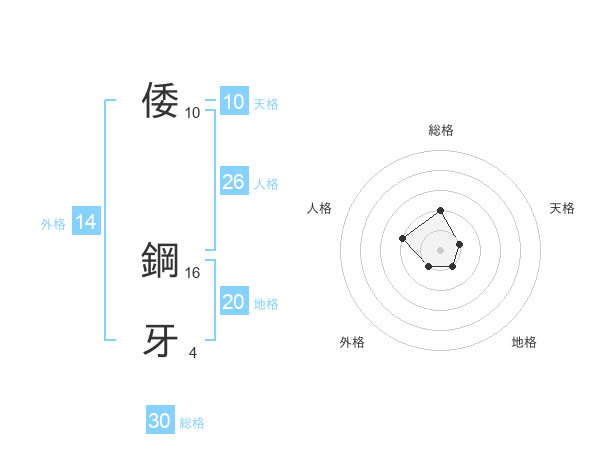 倭 鋼牙さんの総格は30画の2点!