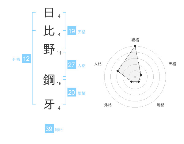 日比野 鋼牙さんの総格は39画の5点!