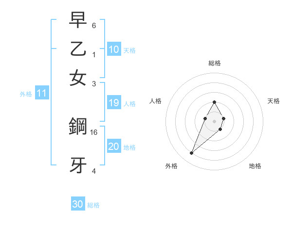 早乙女 鋼牙さんを姓名の画数から五運を鑑定