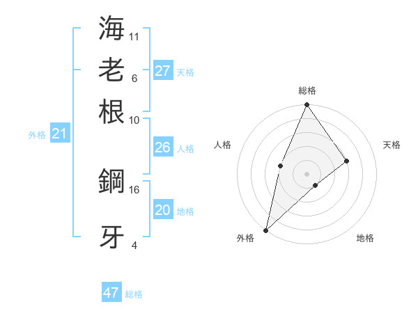 海老根 鋼牙さんを姓名の画数から五運を鑑定
