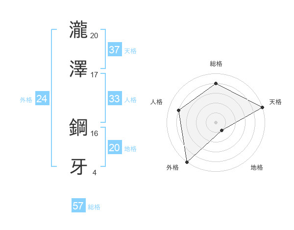 瀧澤 鋼牙さんを姓名の画数から五運を鑑定