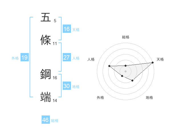五條 鋼端さんを姓名の画数から五運を鑑定