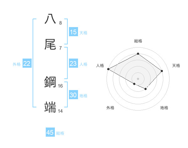 八尾 鋼端さんの総格は45画の4点!