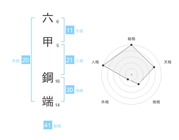 六甲 鋼端さんの総格は41画の5点!
