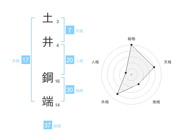 土井 鋼端さんの総格は37画の5点!