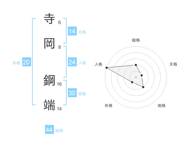 寺岡 鋼端さんを姓名の画数から五運を鑑定