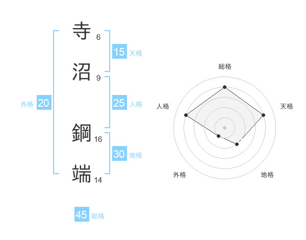 寺沼 鋼端さんの総格は45画の4点!
